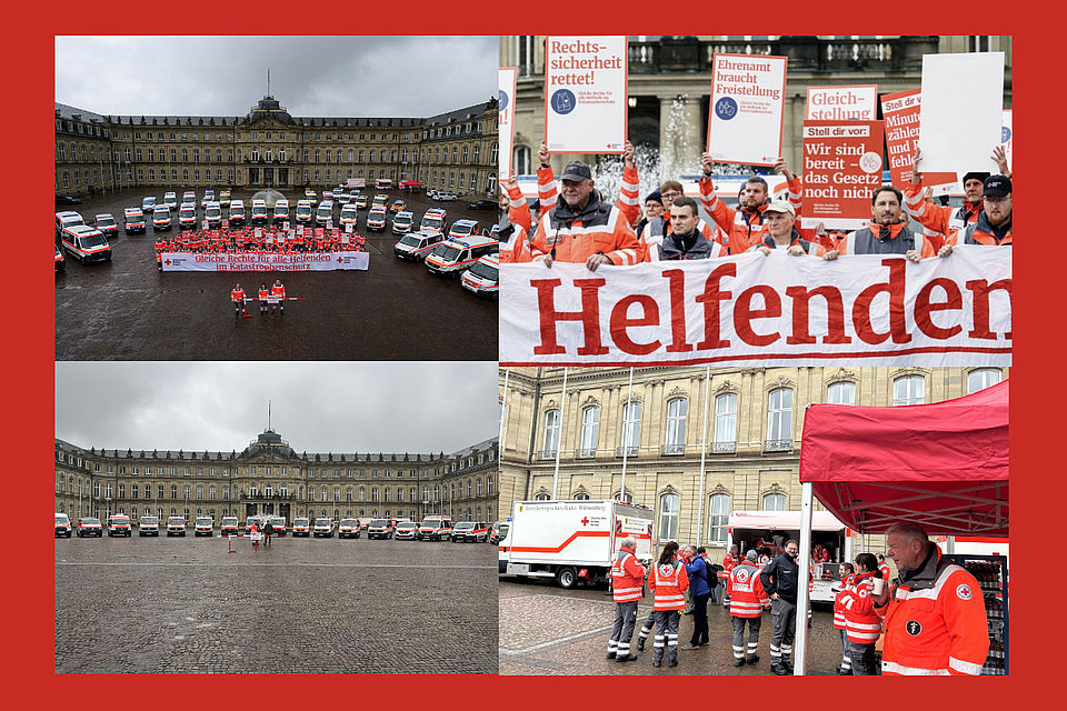 Sie sind gut ausgebildet, motiviert und jederzeit einsatzbereit – doch oft stehen ihnen formale Hürden im Weg. Deshalb haben sich heute mehr als 150 Bevölkerungsschutz-kräfte des Deutschen Roten Kreuzes (DRK) aus dem ganzen Land in Fahrzeugkolonnen auf den Weg nach Stuttgart gemacht. Im Ehrenhof des Neuen Schlosses forderten sie vor Mitgliedern des Innenausschusses, endlich „Gleiche Rechte für alle Helfenden im Katastrophenschutz“ zu schaffen.