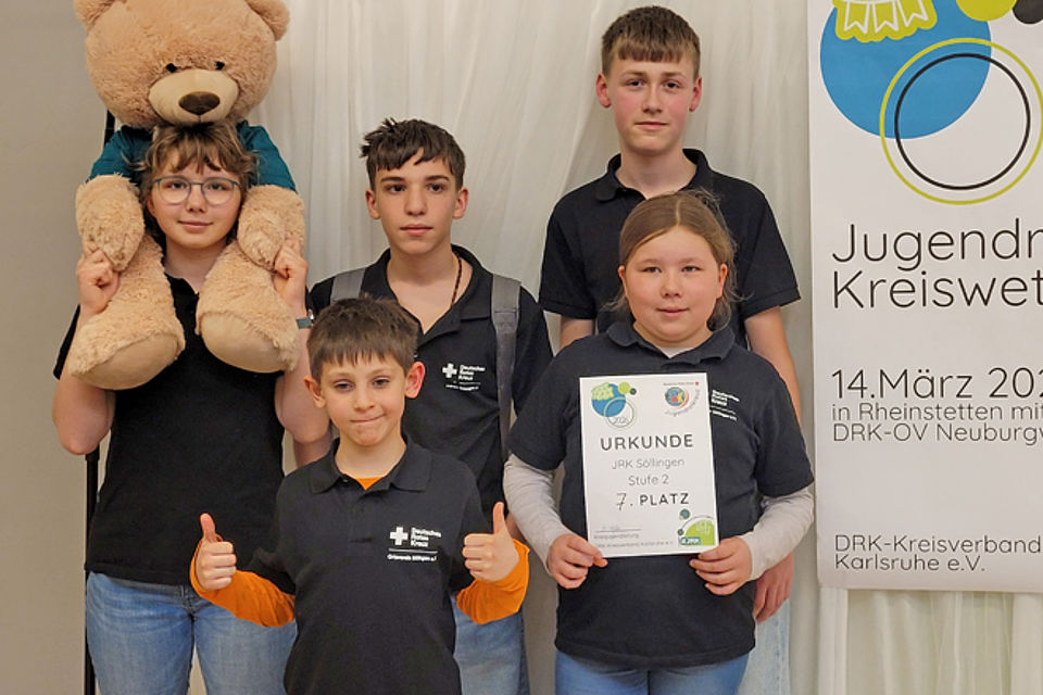 Am 14. März gingen zwei Gruppen des Söllinger Jugendrotkreuzes in den Leistungsvergleich beim Kreiswettbewerb des DRK-Kreisverbandes Karlsruhe. Unter dem Motto „Fairness, Spaß und Gemeinschaft“ kamen in Rheinstetten 27 Gruppen aus 16 Ortsvereinen zusammen.